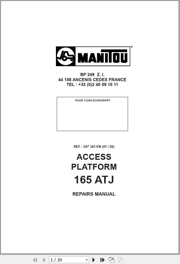 Manitou 165 ATJ General Points Repair Manual 547343 20 Pages