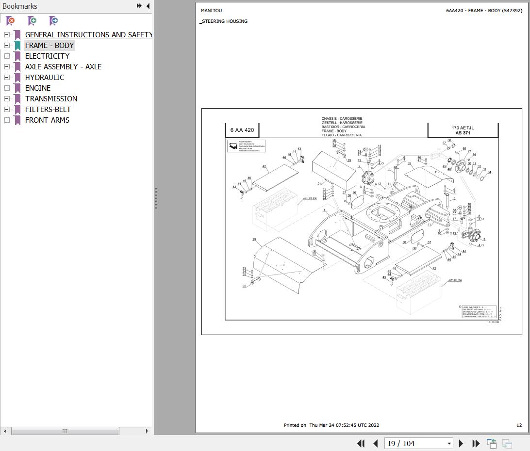 The Bookmarks Of Manitou 170 AETJL AS371 Mobile Elevating Platform Parts Catalog: