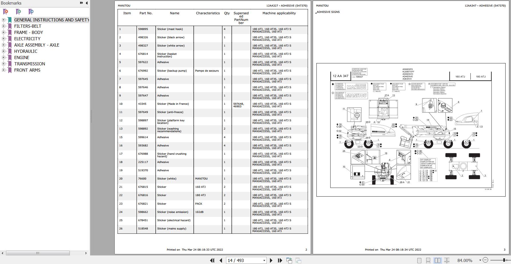 The Bookmarks Of Manitou 180 ATJ Mobile Elevating Platform Parts Catalog:
