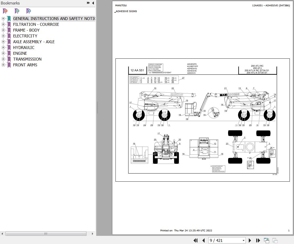 The Bookmarks Of Manitou 200 ATJ Mobile Elevating Platform Parts Catalog:
