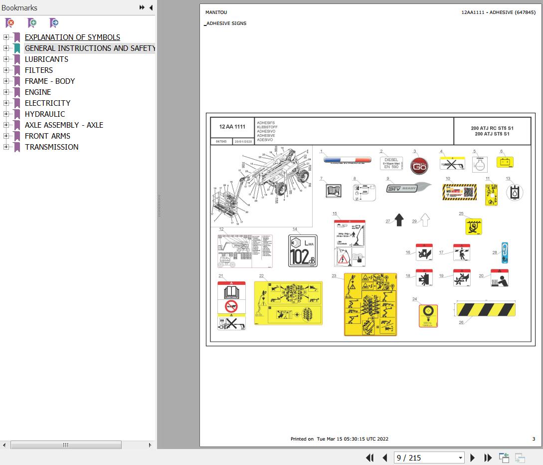 The Bookmarks Of Manitou 200 ATJ ST5 S1 Mobile Elevating Platform Parts Catalog: