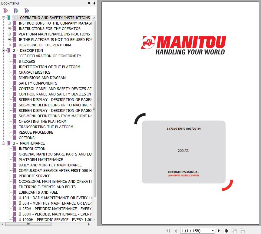The Bookmarks of Manitou 200 ATJ Mobile Elevating Work Platform Operator's Manual:
