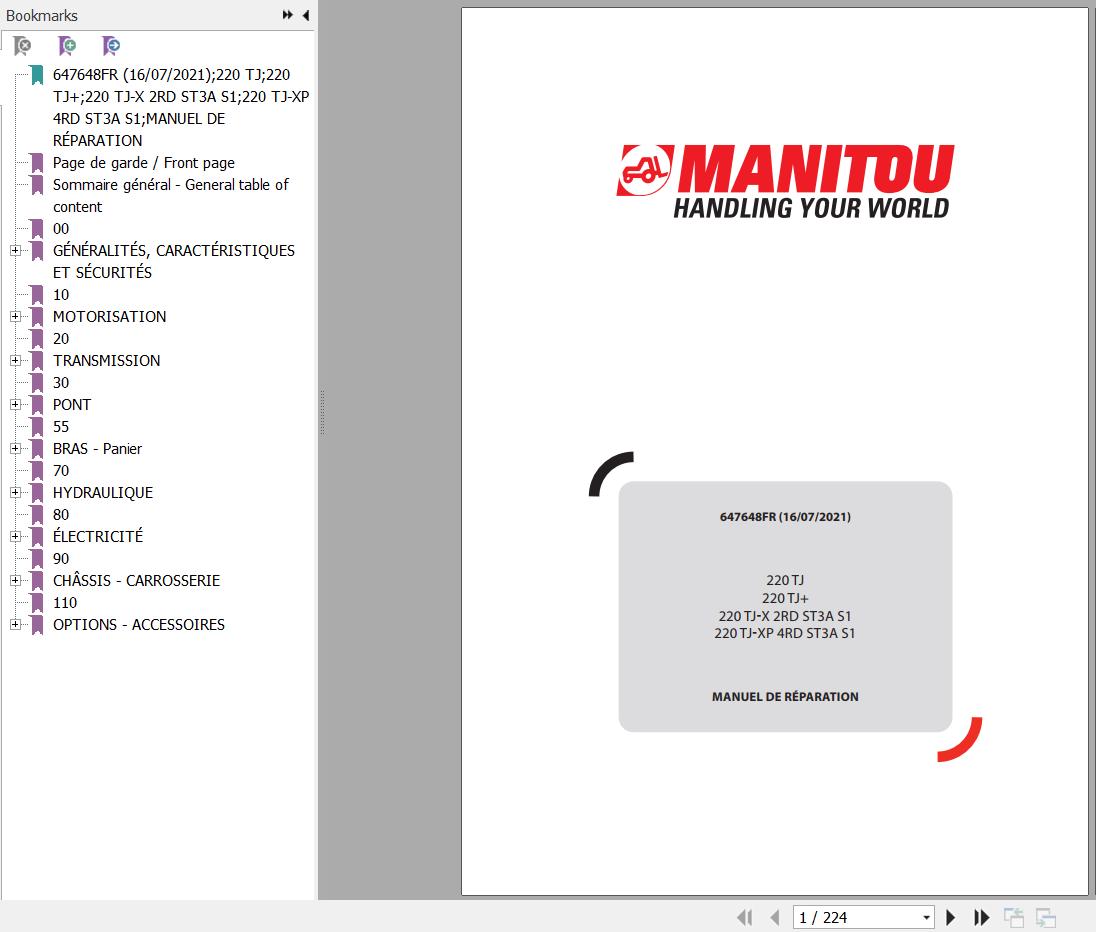 Manitou 220 TJ 220 TJ+ 220 TJ-X 2RD ST3A S1 220 TJ-XP 4RD ST3A S1 Repair Manual 647648