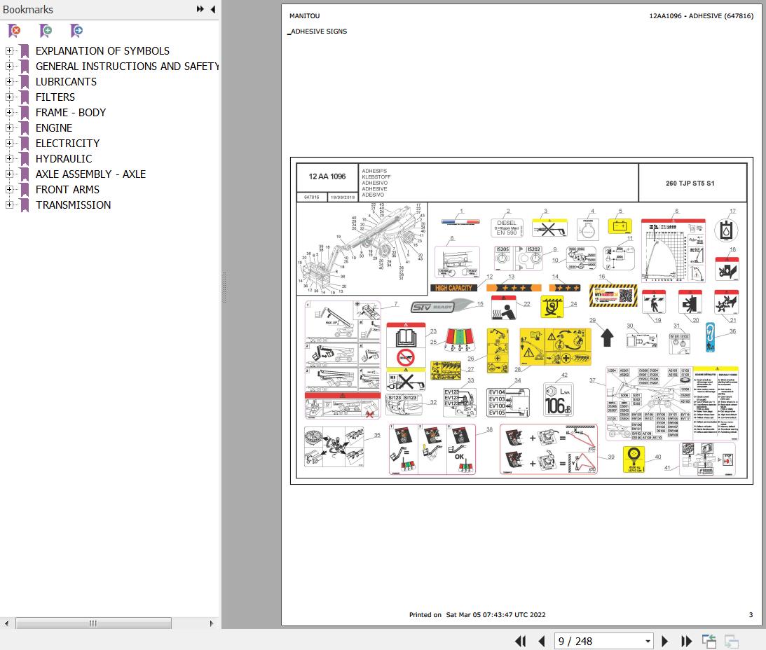 Manitou 260 TJP ST5 S1 280 TJ ST5 S1 Parts Catalog 647816
