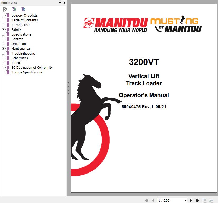 The Bookmarks of Manitou 3200VT Vertical Lift Track Loader Operator's Manual:
