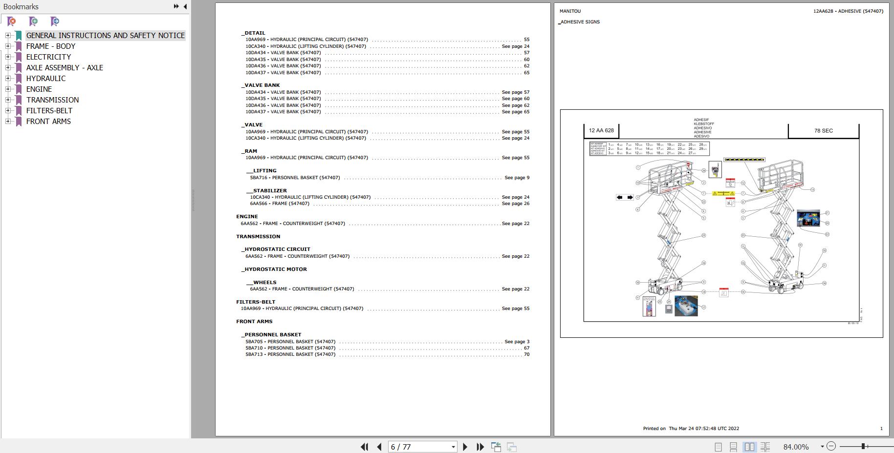 The Bookmarks Of Manitou 78 SEC Mobile Elevating Platform Parts Catalog: