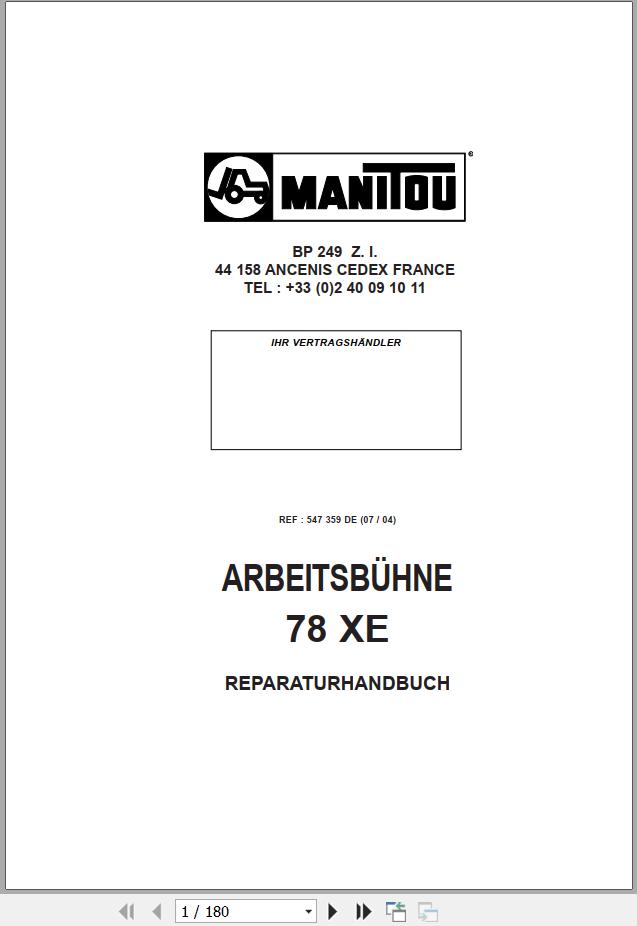 The Bookmarks Of Manitou 78 XE Work Platform Repair Manual: