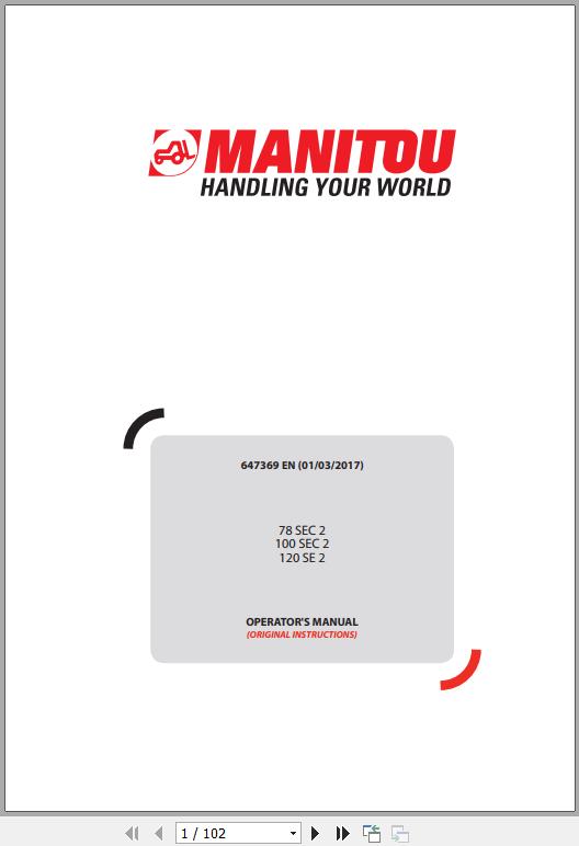 Manitou 78 SEC 2 100 SEC 2 120 SE 2 Operator's Manual 647369