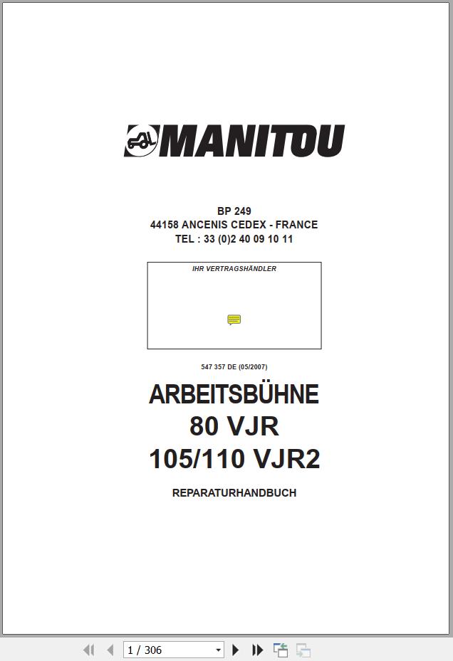 Manitou 80 VJR 105 VJR2 110 VJR2 Repair Manual 547357