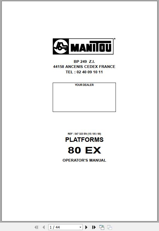The Bookmarks of Manitou 80 EX Mobile Elevating Work Platform Operator's Manual: