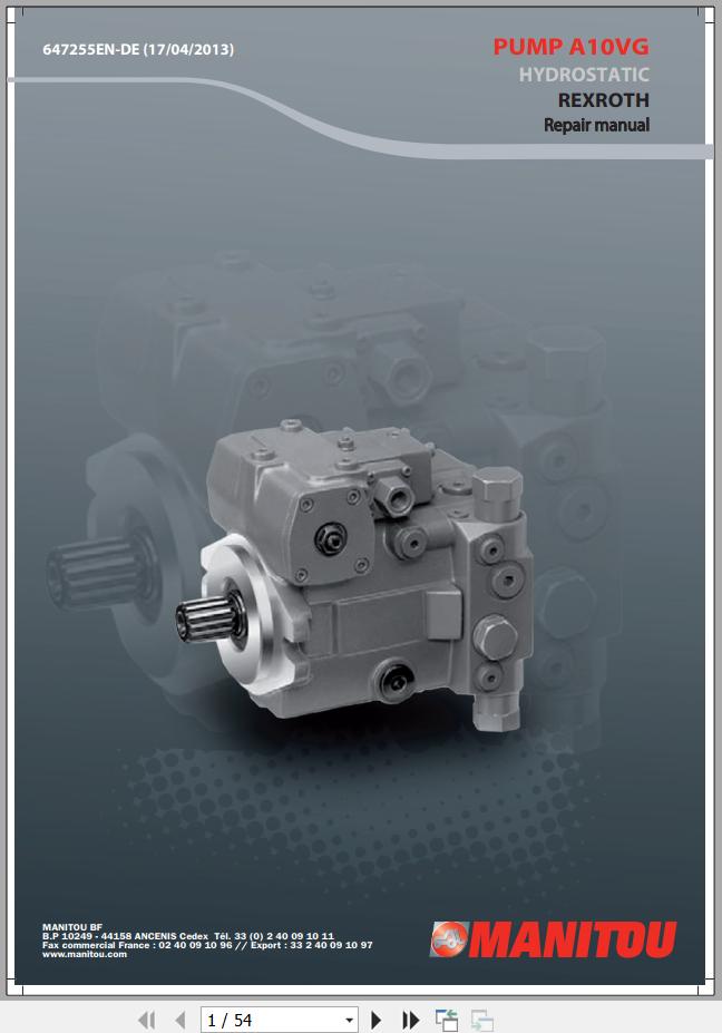 Manitou A10VG 45 Pump Hydrostatic Repair Manual 647255