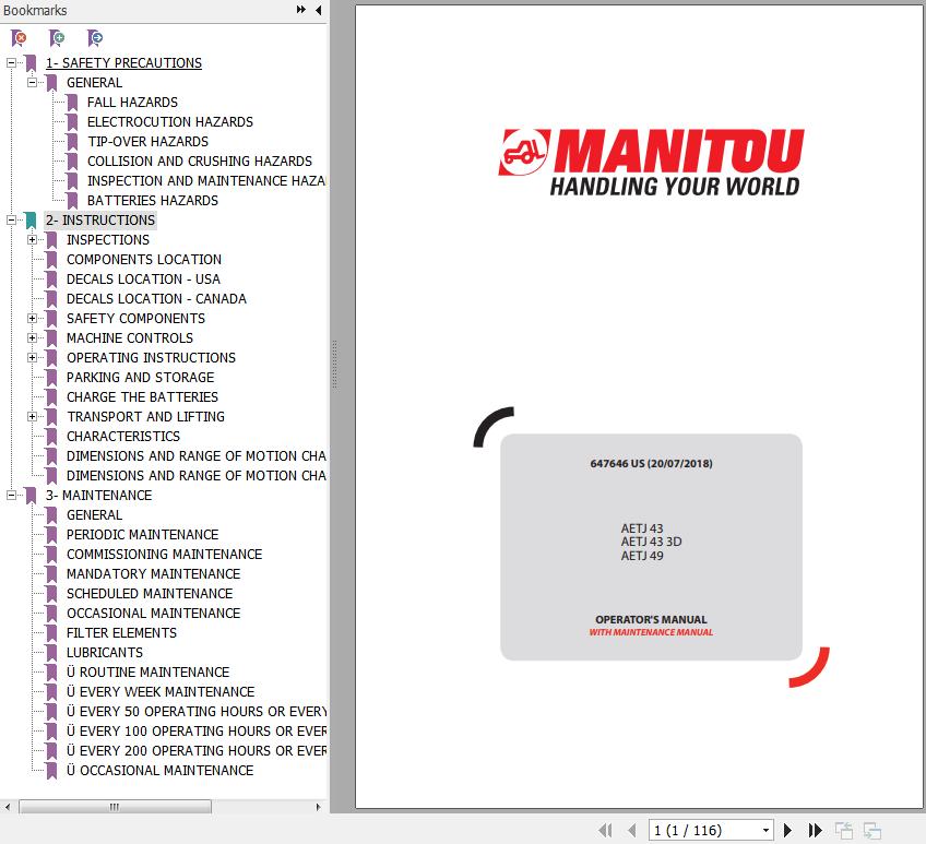 Manitou AETJ 43 AETJ 43 3D AETJ 49 Operator's Manual 647646 US
