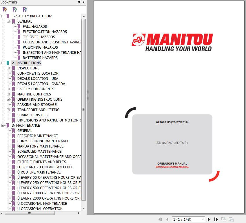 Manitou ATJ 46 RNC 2RD T4 S1 Operator's Manual 647695 US
