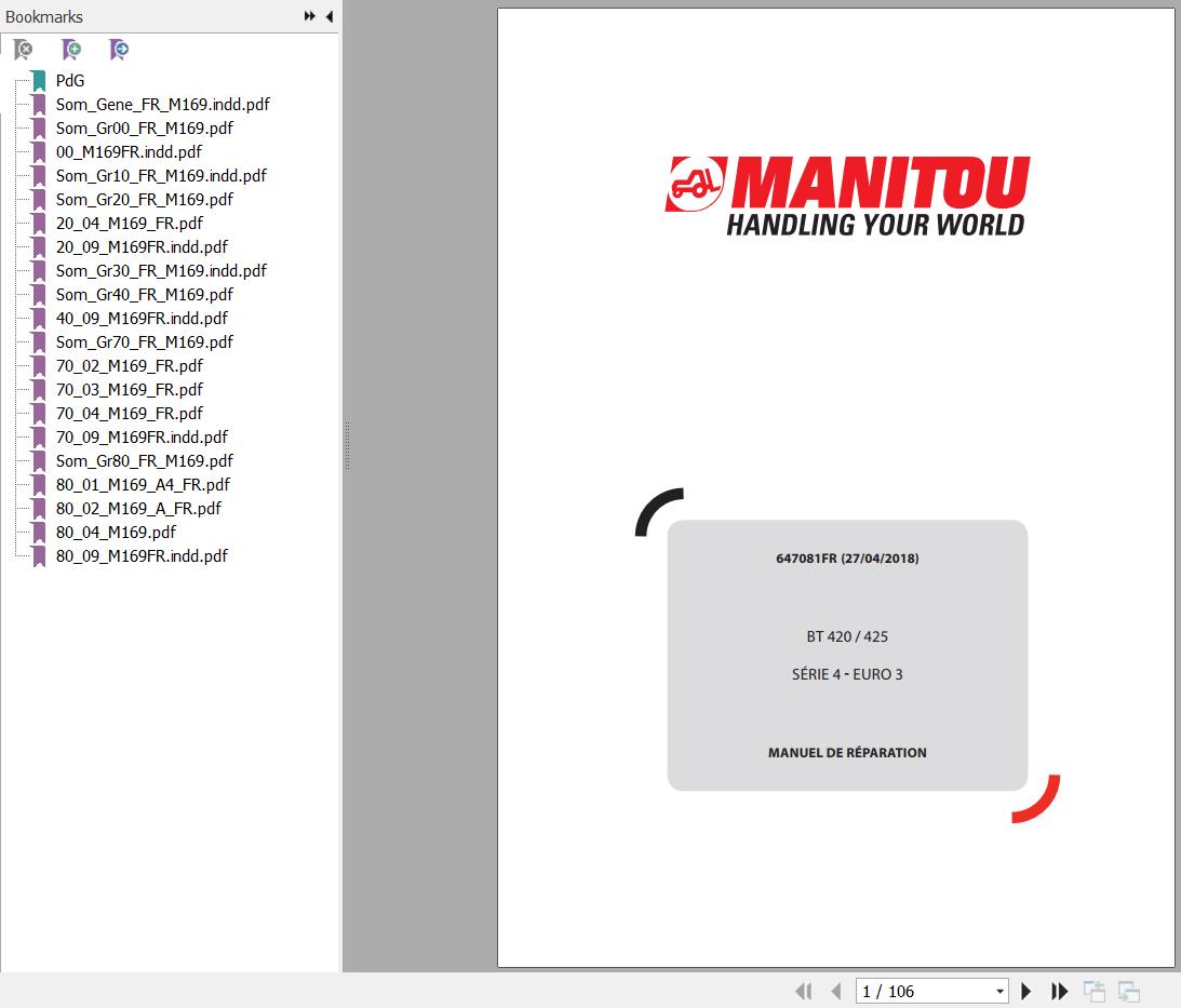 Manitou BT 420 Serie 4 Euro 3 BT 425 Serie 4 Euro 3 Repair Manual 647081