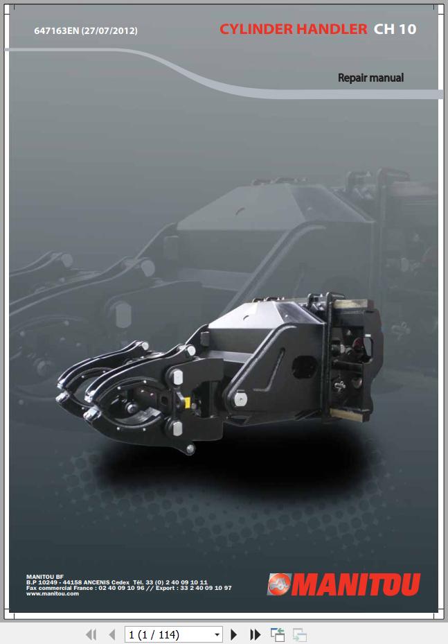 Manitou CH 10 Cylinder Handler Repair Manual 647163