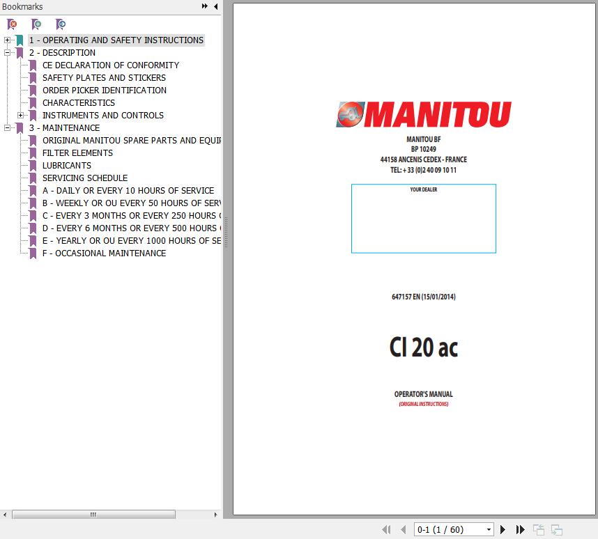The Bookmarks of Manitou CI 20 ac Forklift Operator's Manual: