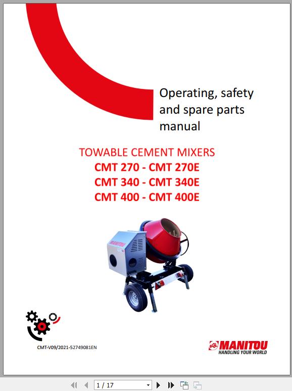 The Bookmarks of Manitou CMT270 CMT270E CMT340 CMT340E CMT400 CMT400E Towable Cement Mixers Operating safety & Spare Parts Manual: