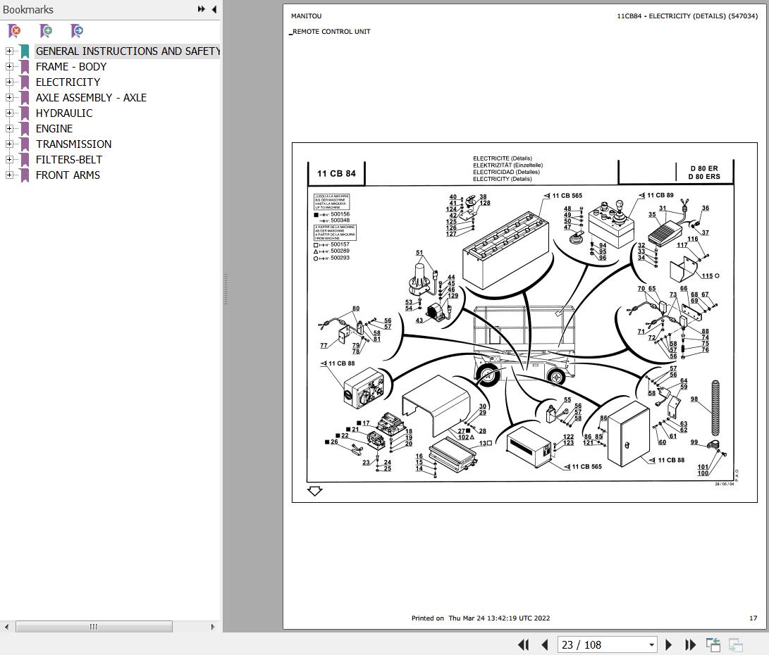 The Bookmarks Of Manitou D 80 ER Mobile Elevating Platform Parts Catalog: