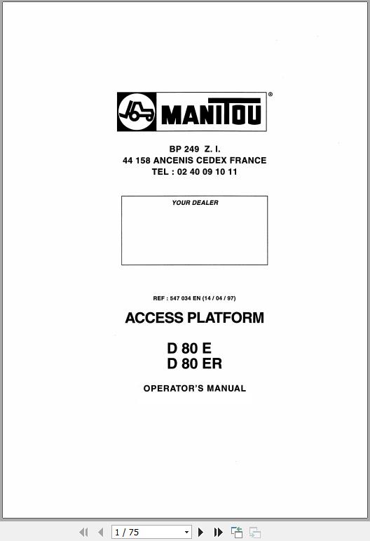 Manitou D 80 E D 80 ER Operator's Manual 547034