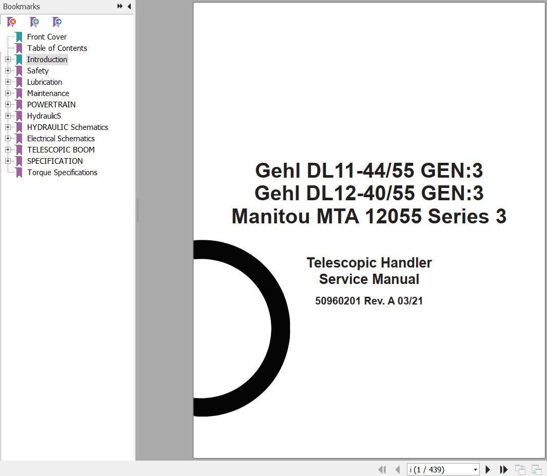 The Bookmarks Of Manitou DL11 44 55 GEN3 DL12 40 55 GEN3 MTA 12055 Series 3 Telescopic Handler Service Manual:
