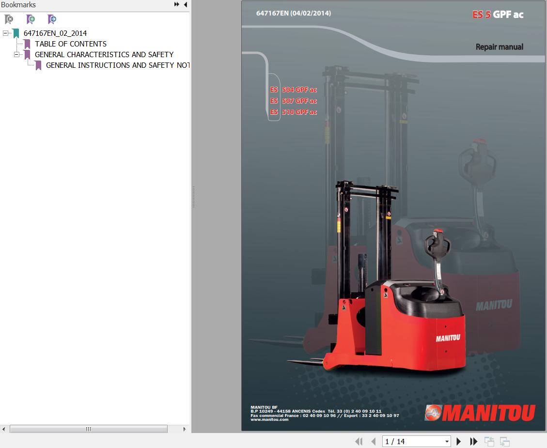 The Bookmarks Of Manitou ES 504 GPF ac ES 507 GPF ac ES 510 GPF ac Forklift Repair Manual: