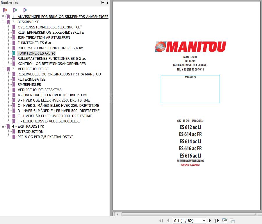 Manitou ES 612 ac LI ES 614 ac FR ES 614 ac LI ES 616 ac FR ES 616 ac LI Operator's Manual 647153 DK