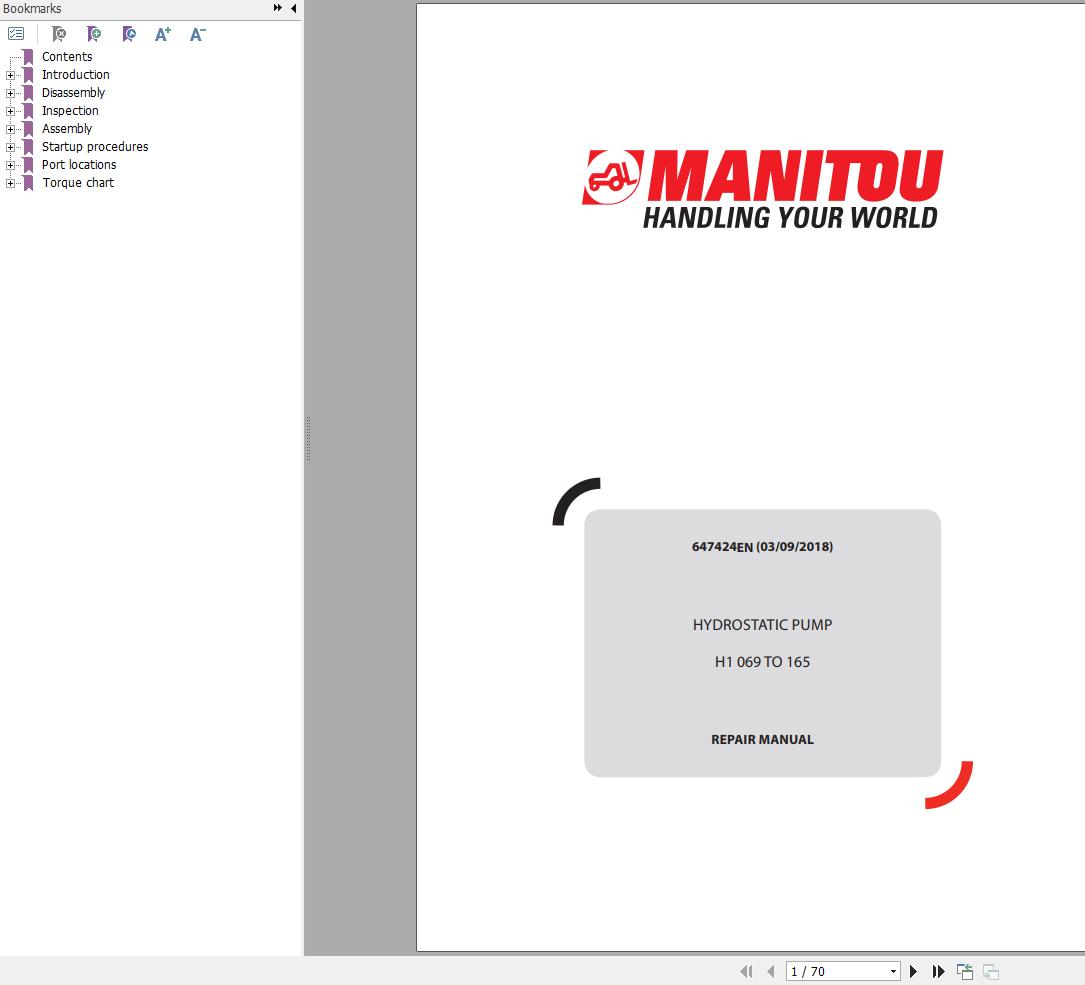 Manitou Hydrostatic Pump H1 069 To 165 Repair Manual 647424EN