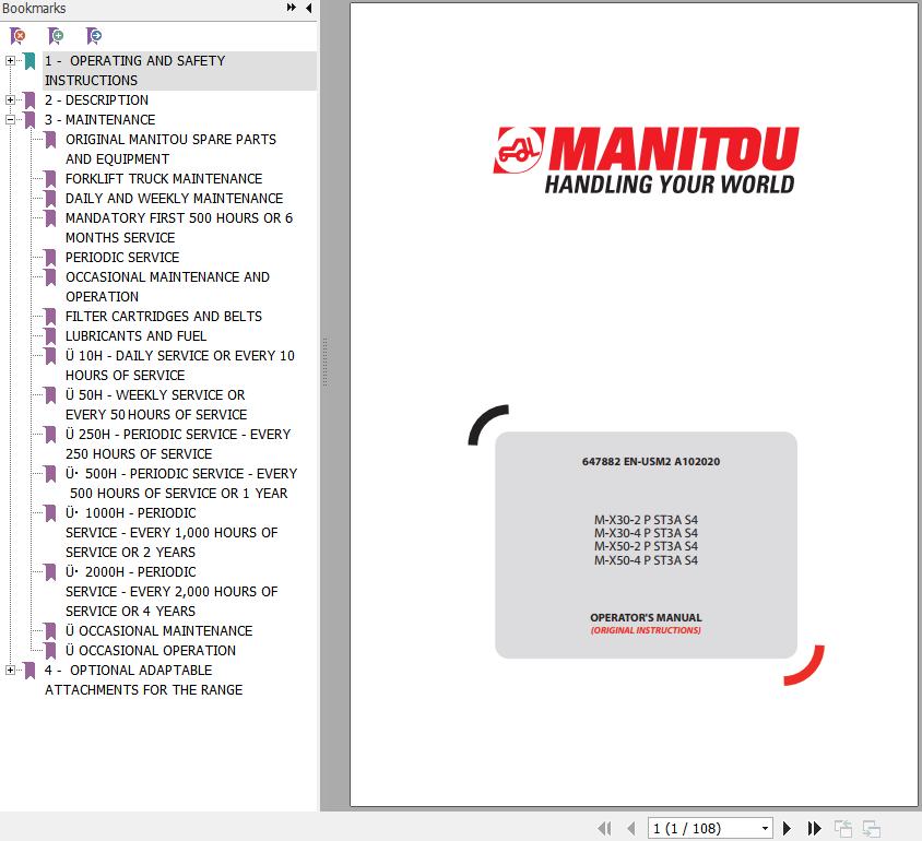 Manitou M-X30-2 P ST3A S4 M-X30-4 P ST3A S4 M-X50-2 P ST3A S4 M-X50-4 P ST3A S4 Operator's Manual 647882EN-USM2A102020