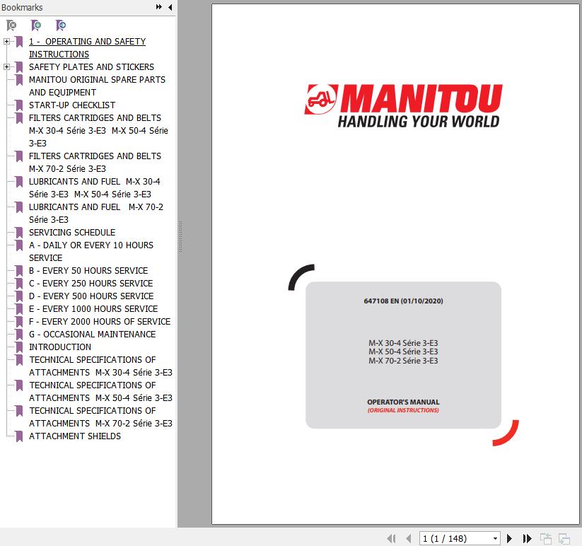 The Bookmarks of Manitou M-X30-4 Series 3-E3 M-X50-4 Series 3-E3 M-X70-2 Series 3-E3 Forklift Operator's Manual: