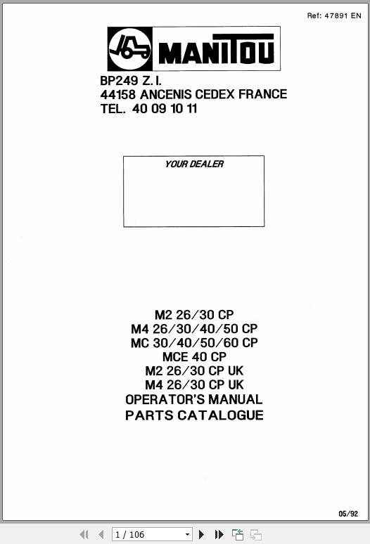 Manitou M2 26 CP To M4 30 CP UK Operator's Manual & Parts catalog 47891