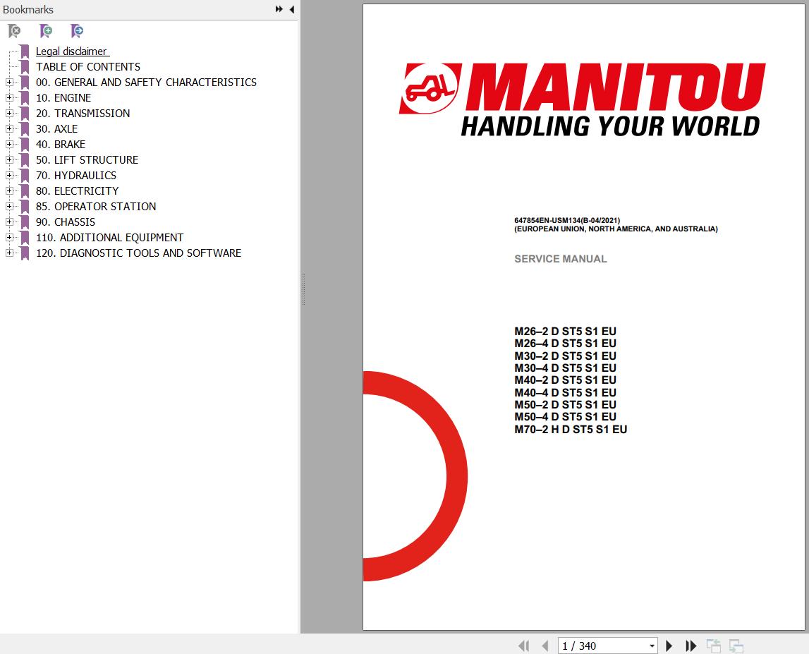 Manitou M26–2 M26–4 M30–2 M30–4 M40–2 M40–4 M50–2 M50–4 M70–2H D ST5 S1 EU Service Manual 647854