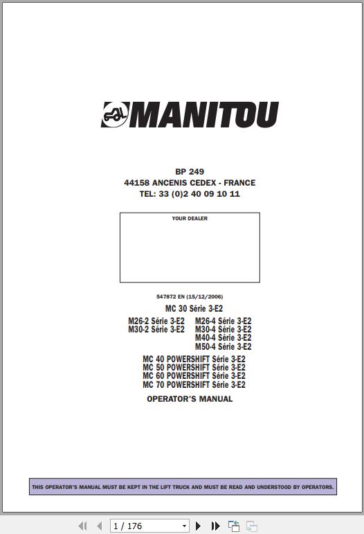Manitou M 26-2 series 3-E2 To MC 70 POWERSHIFT Series 3-E2 Operator's Manual 547872