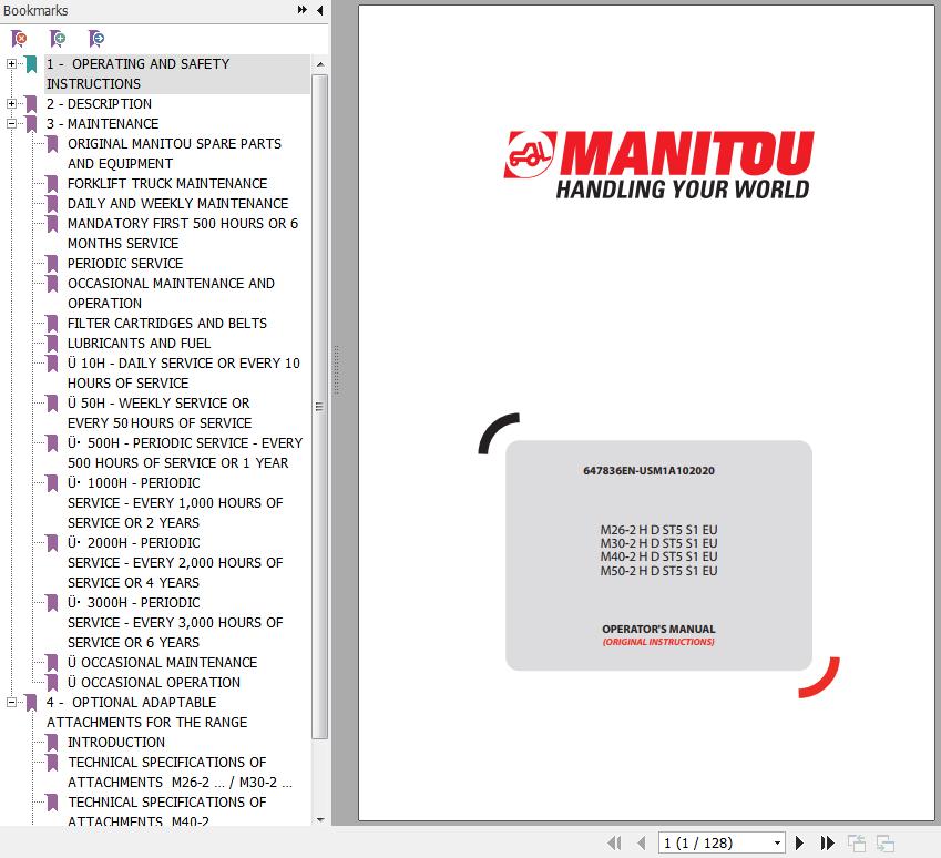 Manitou M26-2H D ST5 S1 EU M30-2H D ST5 S1 EU M40-2H D ST5 S1 EU M50-2H D ST5 S1 EU Operator's Manual 647836EN-USM1A102020