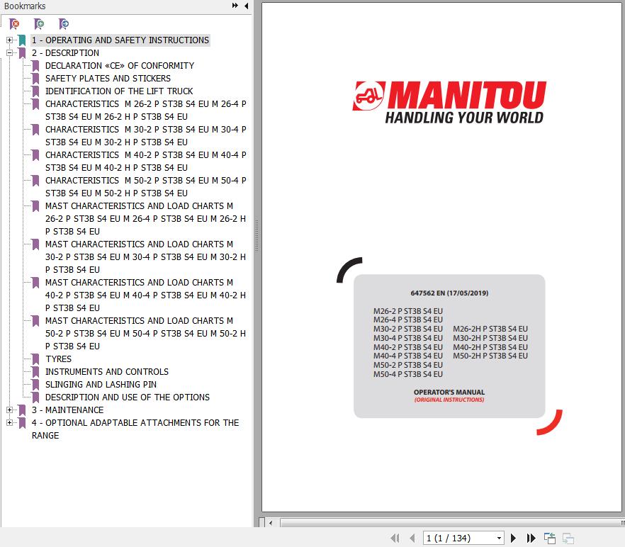 The Bookmarks of Manitou M26-2 P ST3B S4 EU To M50-2H P ST3B S4 EU Operator's Manual: