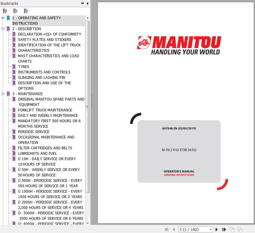 The Bookmarks of Manitou M70-2 H D ST3B S4 EU Forklift Operator's Manual: