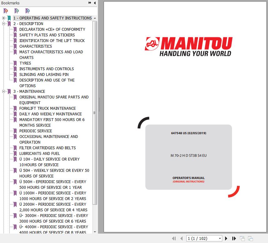 The Bookmarks of Manitou M70-2 H D ST3B S4 EU Forklift Operator's Manual: