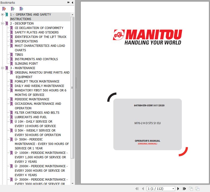 The Bookmarks of Manitou M70-2 H D ST5 S1 EU Forklift Operator's Manual: