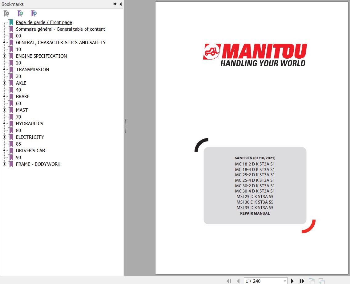 Manitou MC 18-2 18-4 25-2 25-4 30-2 30-4 MSI 25 30 35 D K ST3A S1 Repair Manual 647659