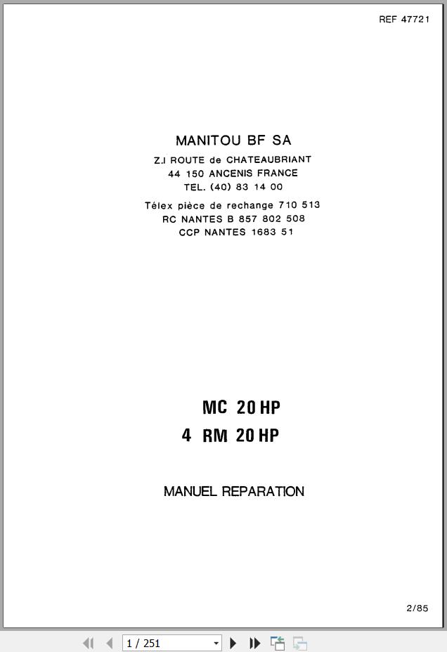 Manitou MC 20 HP-4 RM 20HP Repair Manual 47721