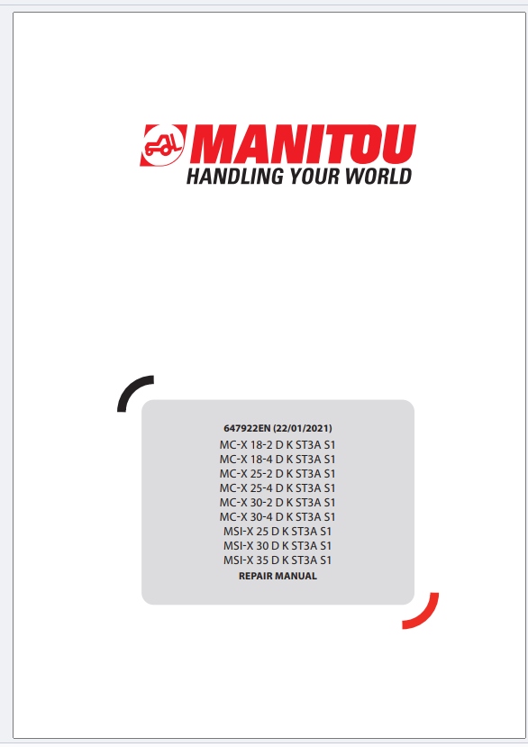 Manitou Forklift MC-X 18-2 D K ST3A S1 to MC-X 30-2 D K ST3A S1 Repair Manual 647922EN 2021.pdf