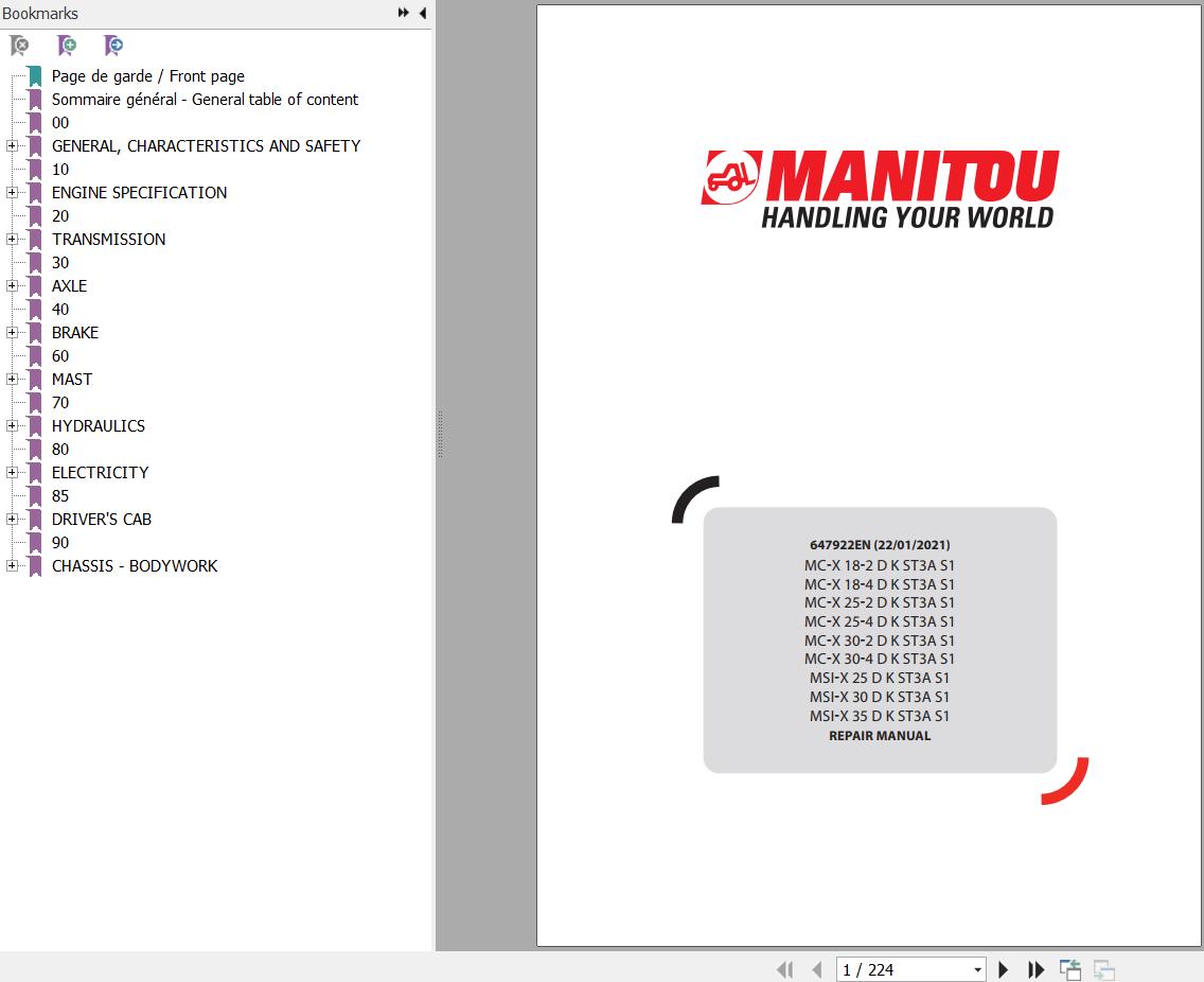Manitou MC-X 18-2 18-4 25-2 25-4 30-2 30-4 MSI-X 25 30 35 D K ST3A S1 Repair Manual 647922