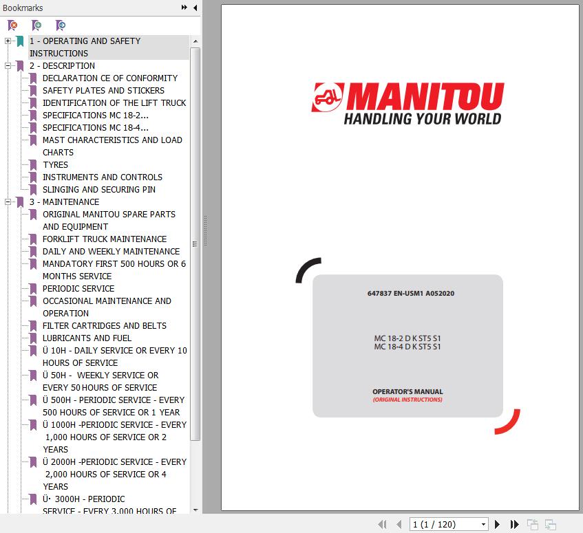 The Bookmarks of Manitou MC 18-2 D K ST5 S1 MC 18-4 D K ST5 S1 Forklift Operator's Manual :