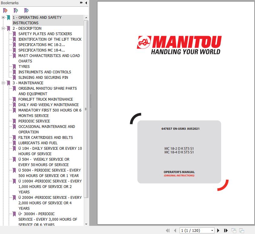 The Bookmarks of Manitou MC 18-2 D K ST5 S1 MC 18-4 D K ST5 S1 Forklift Operator's Manual: