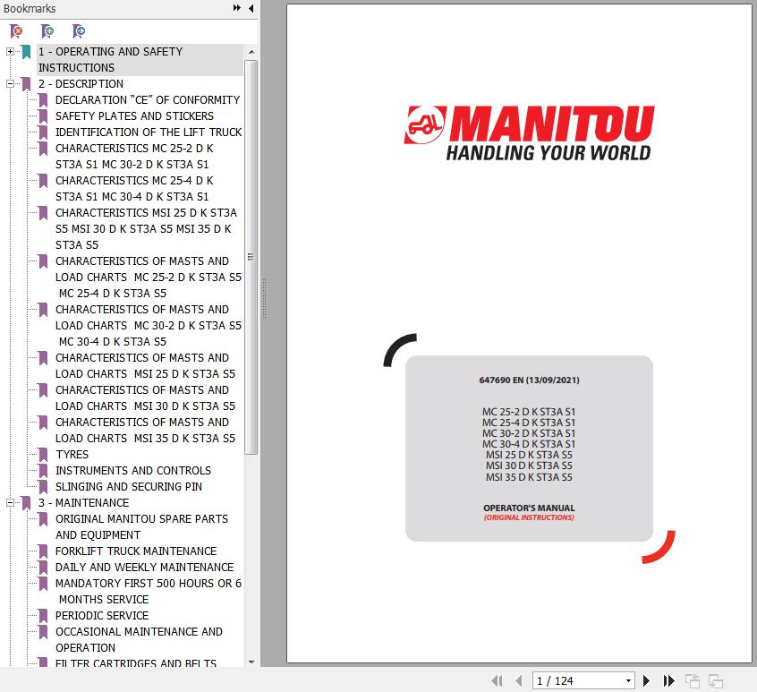 The Bookmarks of Manitou MC 25-2 D K ST3A S1 To MSI 35 D K ST3A S5 Forklift Operator's Manual: