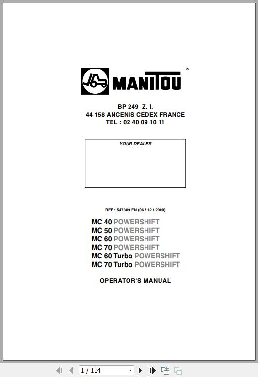 Manitou MC 40 POWERSHIFT To MC 70 Turbo POWERSHIFT Operator's Manual 547309