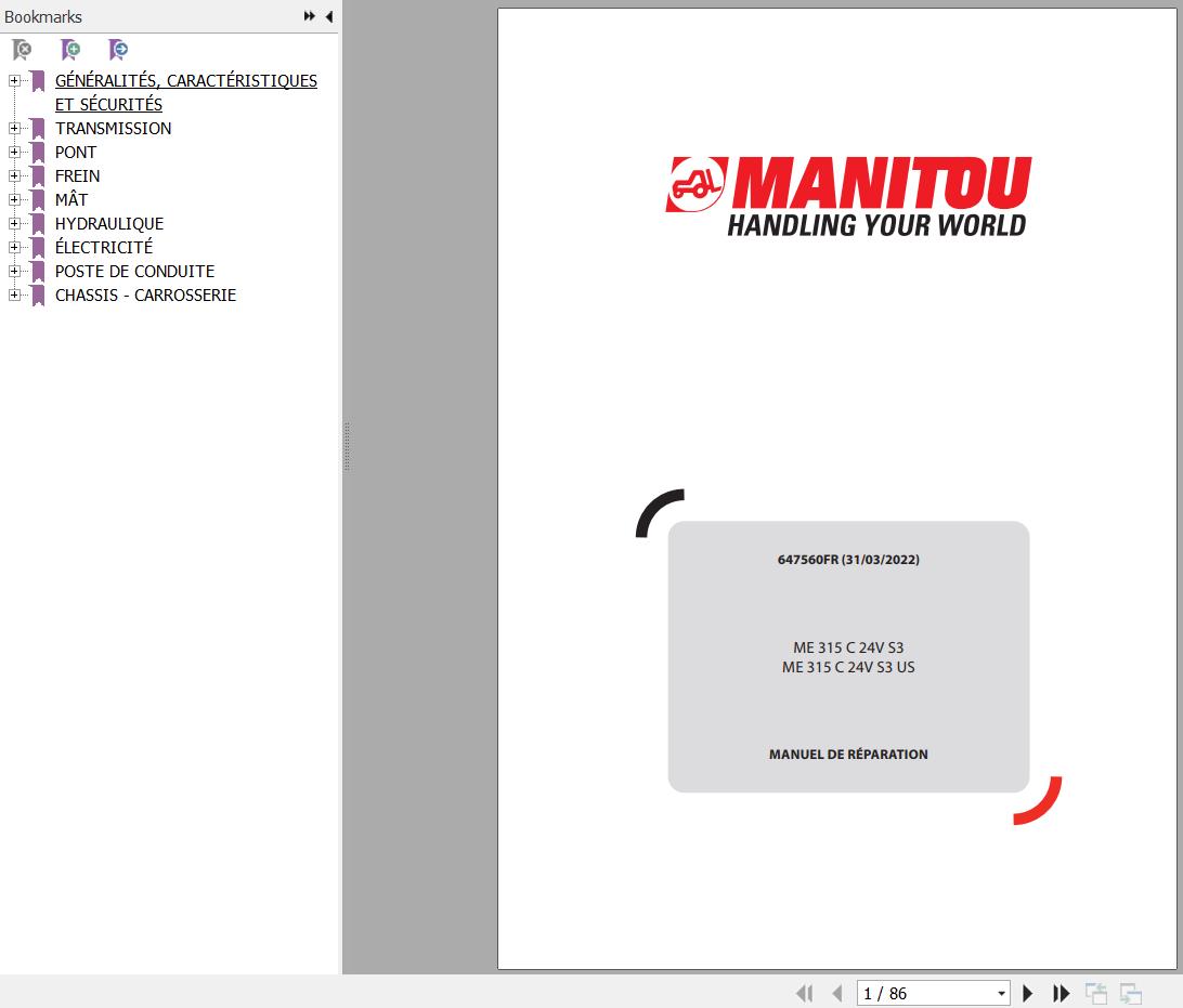 The Bookmarks Of Manitou ME 315 C 24V S3 ME 315 C 24V S3 US Forklift Repair Manual: