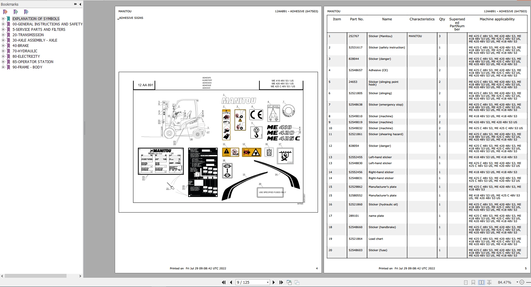 The Bookmarks of Manitou ME 420 48V S3 US Forklift Parts Manual: