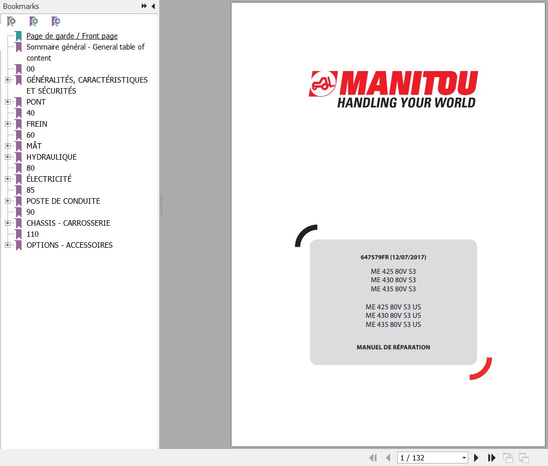 The Bookmarks Of Manitou ME 425 430 435 80V S3 (US) Forklift Repair Manual: