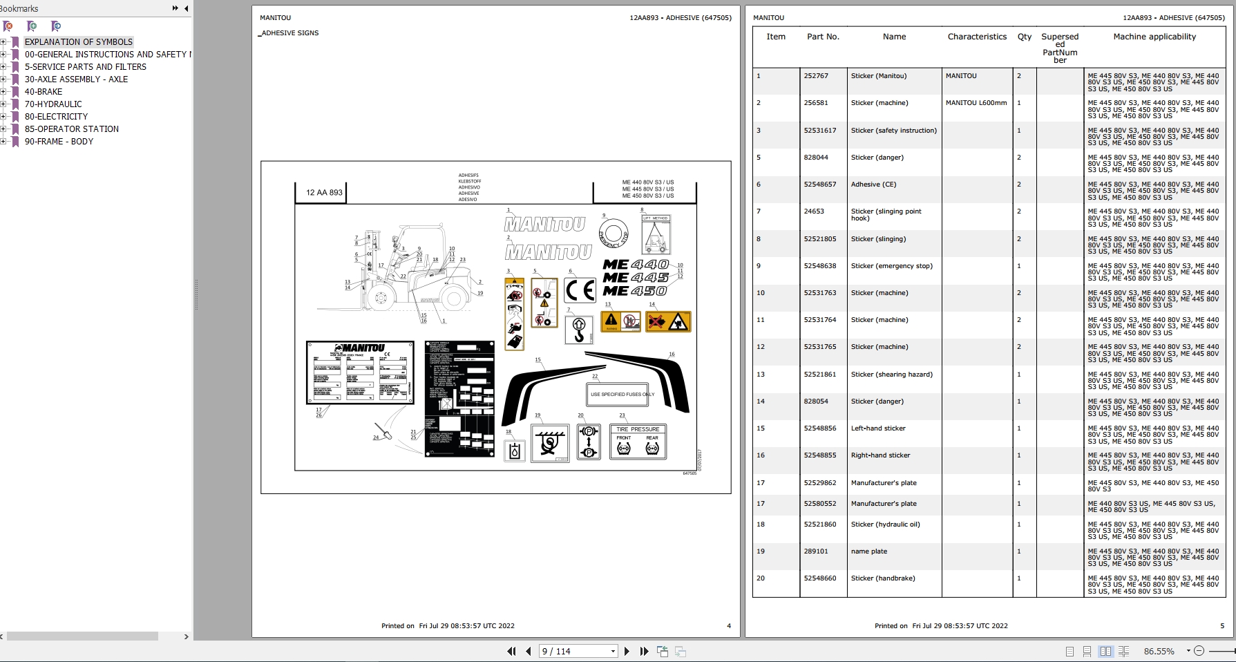 The Bookmarks of Manitou ME 440 80V S3 Forklift Parts Manual: