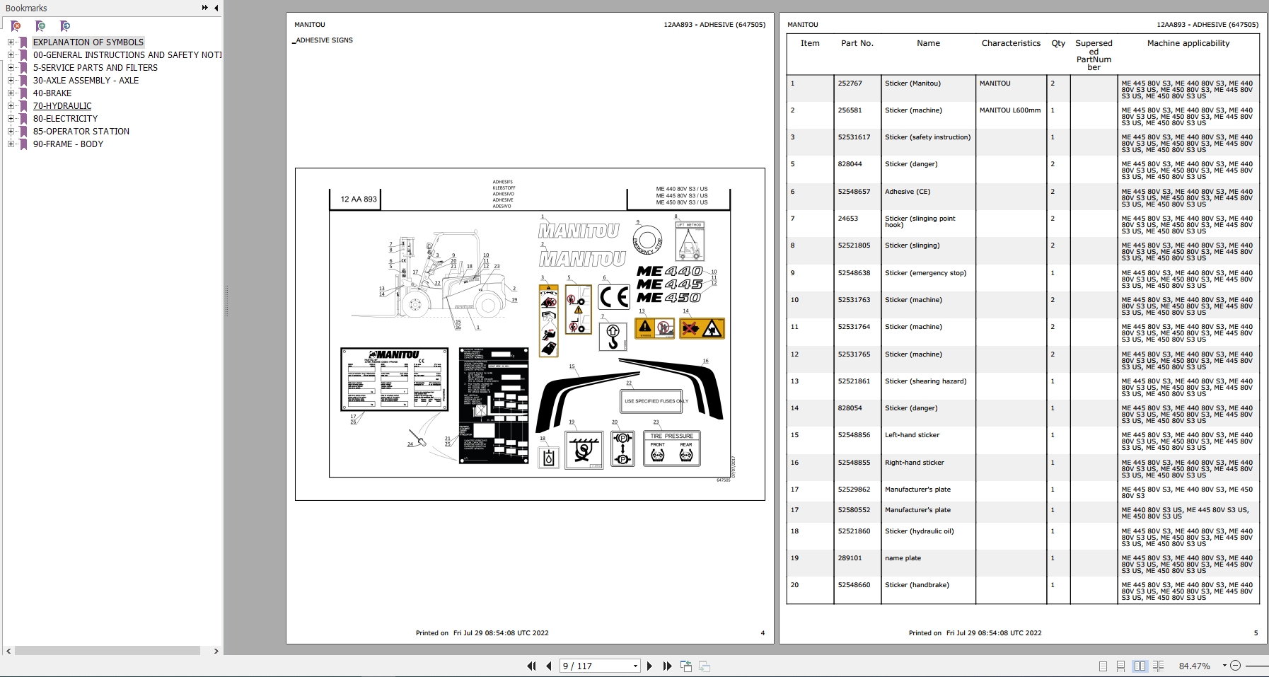 The Bookmarks of Manitou ME 440 80V S3 US Forklift Parts Manual:
